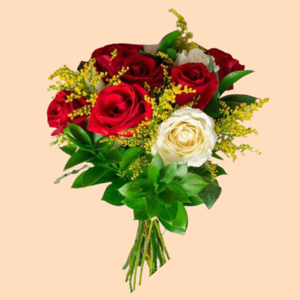 1 Buquê com 3 rosas vermelhas e 3 rosas brancas;